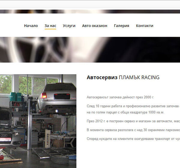 Изработка на уеб сайт на автосервиз “Пламък – Racing”