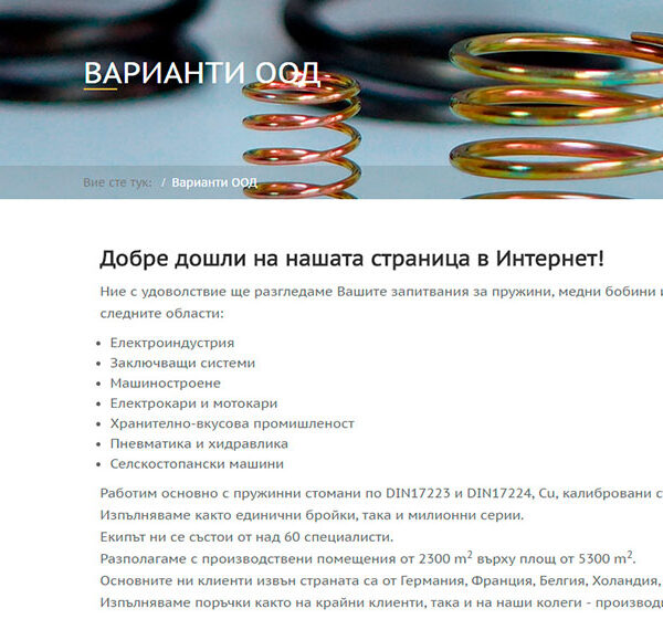 Изработка на уеб сайт на “Варианти ООД”