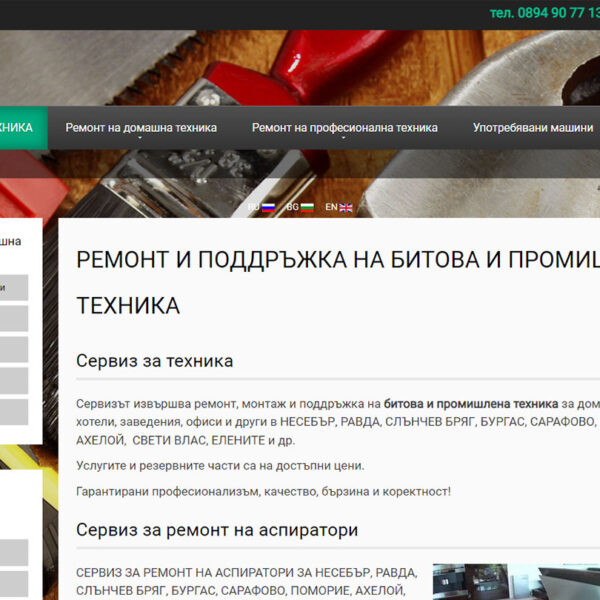 Изработка на уеб сайт Сервиз за ремонт на техника