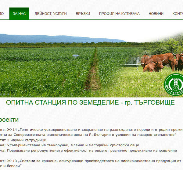 Изработка на уеб сайт на Опитна станция по земеделие – ДП – гр. Търговище